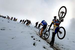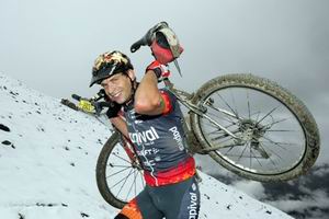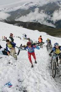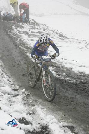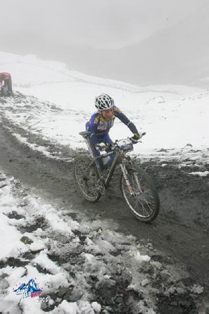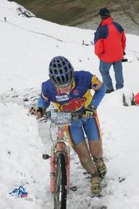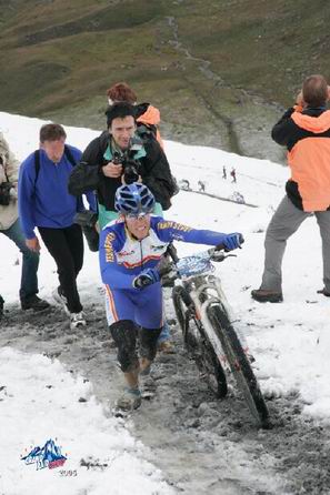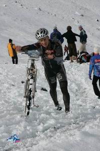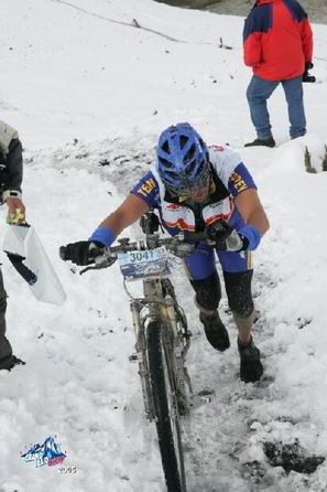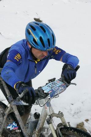 ![]() Dans la descente, il s'est arrêté pour mettre des gants à longs doigts. Il était gelé et plein de douleur. Sa plus belle victoire en 6h47' |