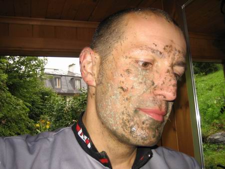 ![]() Môssieur s'est fait une petite beauté en arrivant : un masque de boue d'Anniviers. Dis ? Tu vas te laver quand même ou tu ramènes le maquillage en Amérrrrique pour montrer aux copains que nous ne sommes pas des fayots ?! |