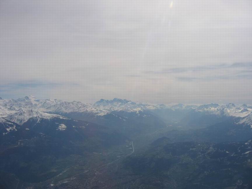 plaine du Rhône Direction Sierre (au fond le Mt-blanc 55km) |