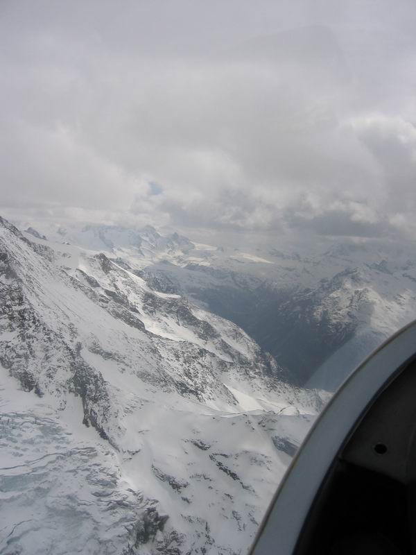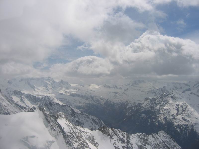 dessus de Zermatt, 4000 m., le Cervin toujours dans le nuage ! |