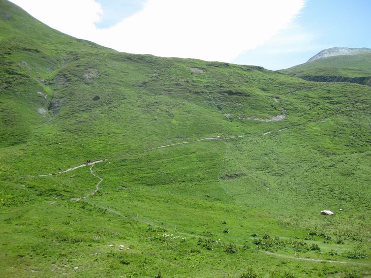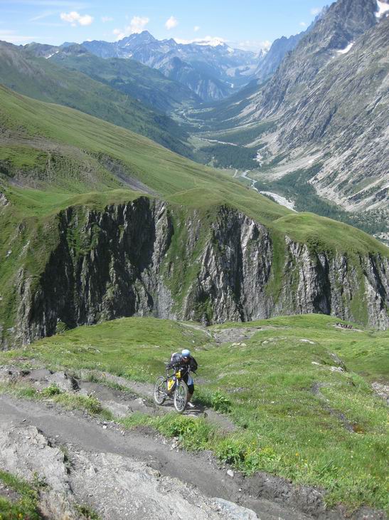 Depuis le Grand Col de Ferret, en dessous le Refuge d'Elena. 500m de dénivelation, 45 min. à pied (pour moi) et un peu plus avec le vtt! |